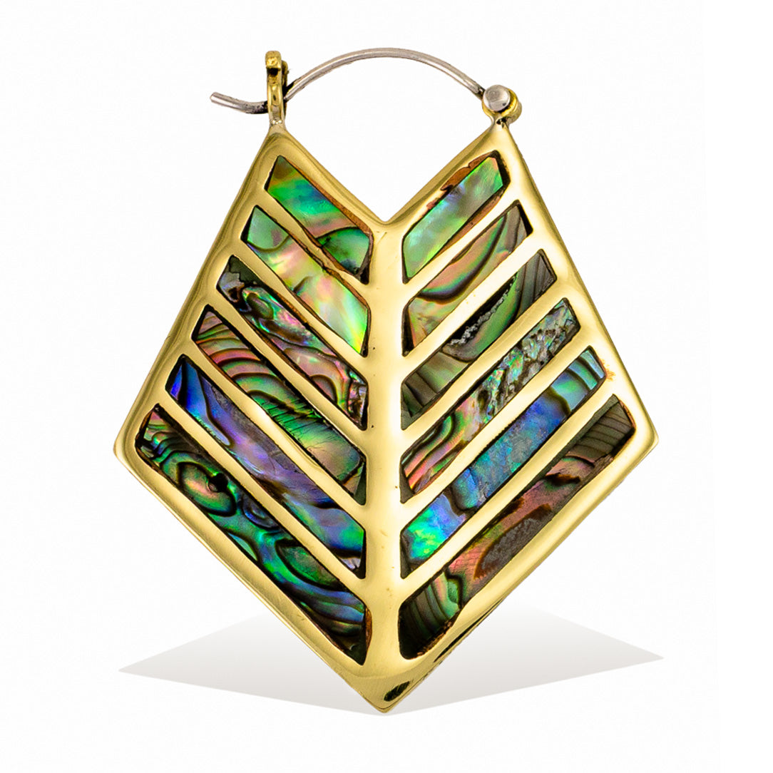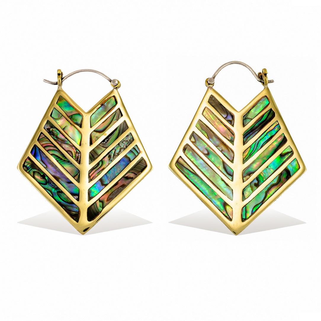 These handmade brass earrings are shaped into designs that are inspired by nature and mythology. Due to the natural characteristics of the abalone shell from New Zealand, some variations in color may occur. The 18 gauge sterling silver posts fit standard sized pierced ears.