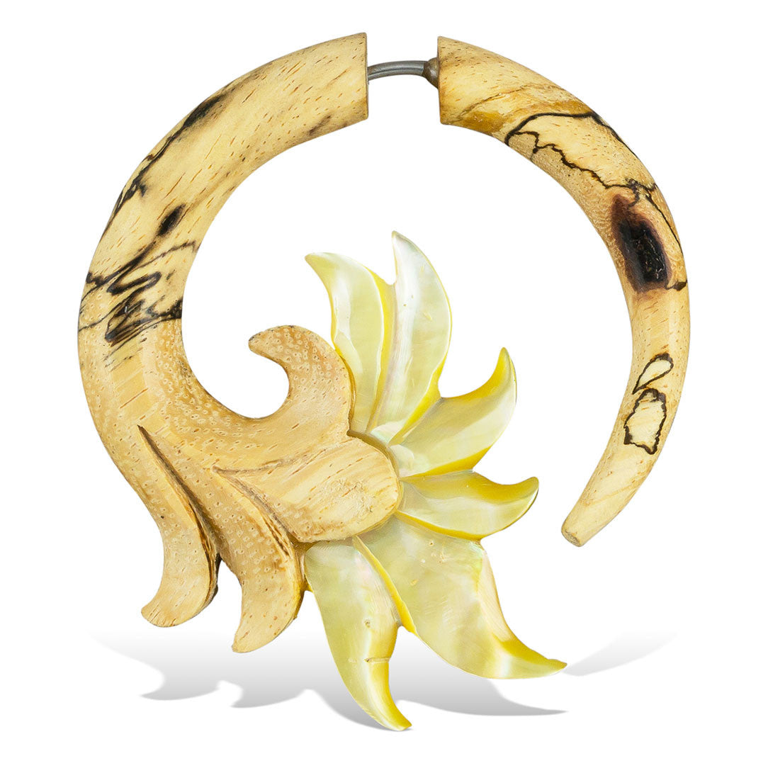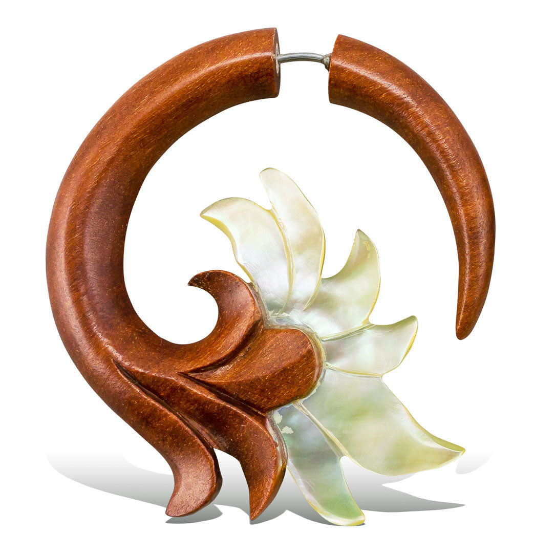 Due to the natural characteristics of the tropical hardwoods and the shell from New Zealand, some variations in color may occur. The 19 gauge surgical steel post is 100% hypoallergenic.