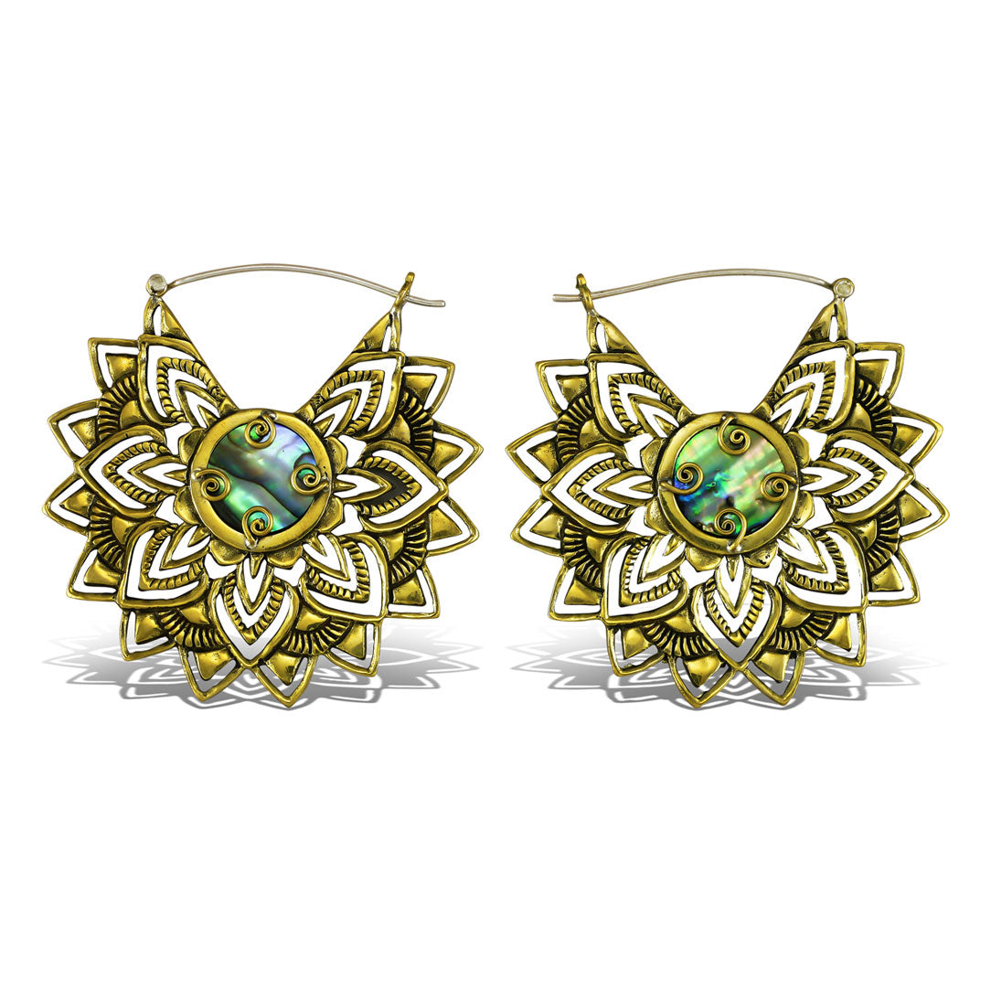 These handmade brass earrings are shaped into designs that are inspired by nature and Hindu culture. The 18 gauge sterling silver posts fit standard sized pierced ears.