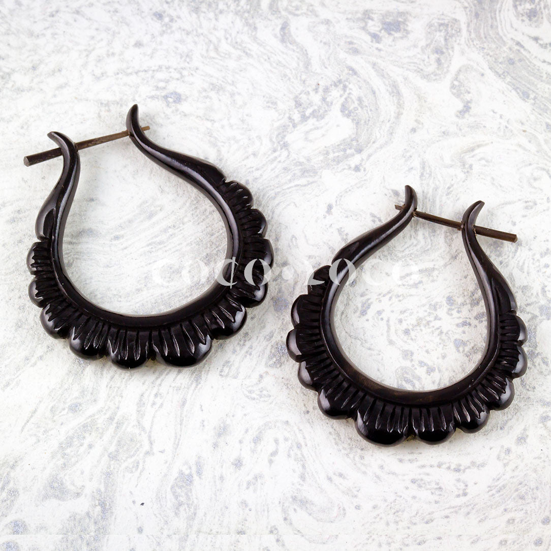 The salvaged horn used for these earrings is from a domesticated water buffalo used for cultivation and food. Due to the natural characteristics of the material, slight variation in color may occur. The post fits a standard size piercing, rarely causes irritation, and is a great alternative for people who are sensitive to metallic earrings.