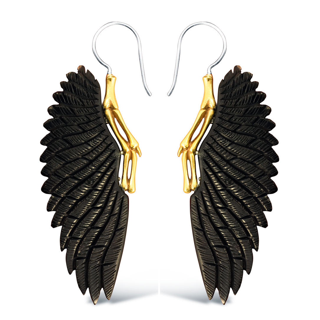 Inlaid in brass, these earrings are carved from salvaged horn from a domesticated water buffalo used for cultivation and food. The 18 gauge sterling silver posts fit standard sized pierced ears.