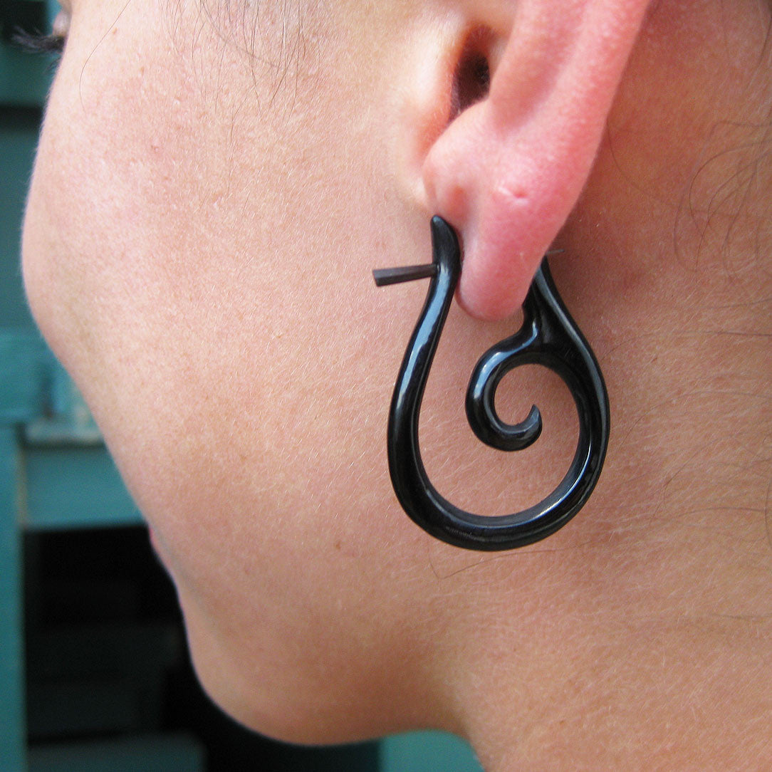 The salvaged horn used for these earrings is from a domesticated water buffalo used for cultivation and food. Due to the natural characteristics of the material, slight variation in color may occur. The post fits a standard size piercing, rarely causes irritation, and is a great alternative for people who are sensitive to metallic earrings.