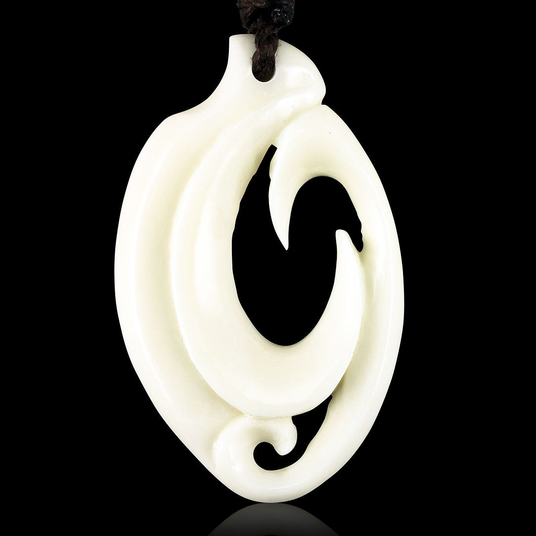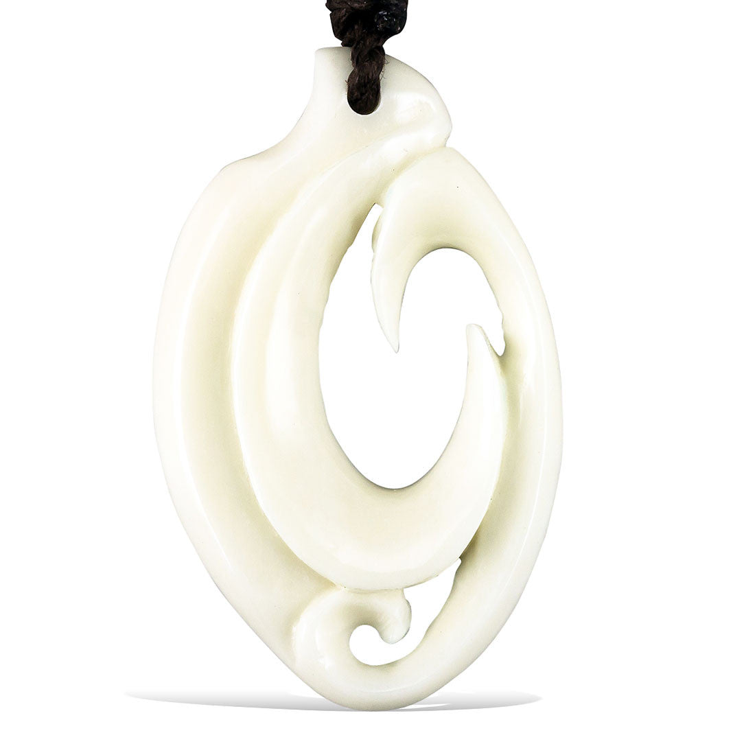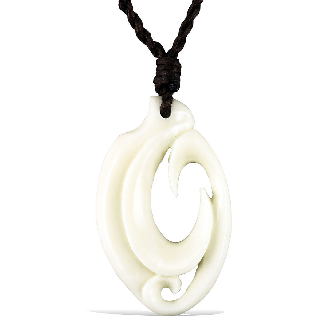 The salvaged bone used to hand-carve these pendants comes from a domesticated water buffalo used for cultivation and food. To minimize waste, they are respectfully utilized for this form of art and income. Every carved Maori pendant has significance and meaning. Some combine several elements from Maori mythology to provide the carrier with the appropriate guidance and protection along the journey. Some basic designs & their meanings: Fishhook- strength, determination, prosperity, safe passage over open water; Spiral- new beginnings, growth, harmony, peace and tranquility; Twist- balance, eternity, friendship, love, two lives bond together as one; Dragon- sky, earth, sea and the other balance between the elements.