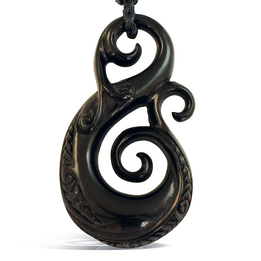 The salvaged horn used to hand-carve these pendants comes from a domesticated water buffalo used for cultivation and food. To minimize waste, they are respectfully utilized for this form of art and income. Every carved Maori pendant has significance and meaning. Some combine several elements from Maori mythology to provide the carrier with the appropriate guidance and protection along the journey. Some basic designs & their meanings: Fishhook- strength, determination, prosperity, safe passage over open water; Spiral- new beginnings, growth, harmony, peace and tranquility; Twist- balance, eternity, friendship, love, two lives bond together as one; Dragon- sky, earth, sea and the other balance between the elements.