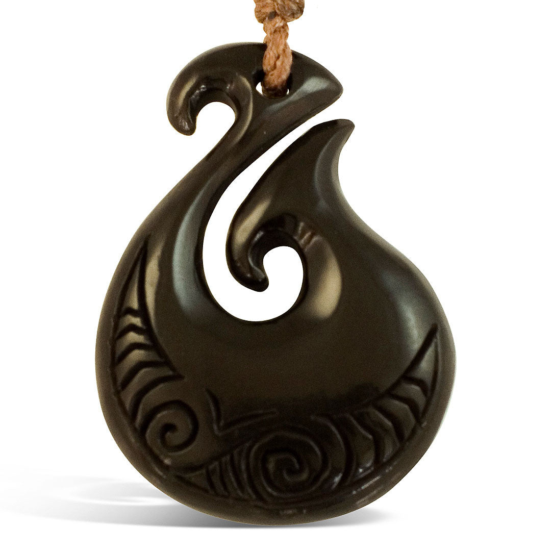 The salvaged horn used to hand-carve these pendants comes from a domesticated water buffalo used for cultivation and food. To minimize waste, they are respectfully utilized for this form of art and income. Every carved Maori pendant has significance and meaning. Some combine several elements from Maori mythology to provide the carrier with the appropriate guidance and protection along the journey. Some basic designs & their meanings: Fishhook- strength, determination, prosperity, safe passage over open water; Spiral- new beginnings, growth, harmony, peace and tranquility; Twist- balance, eternity, friendship, love, two lives bond together as one; Dragon- sky, earth, sea and the other balance between the elements.