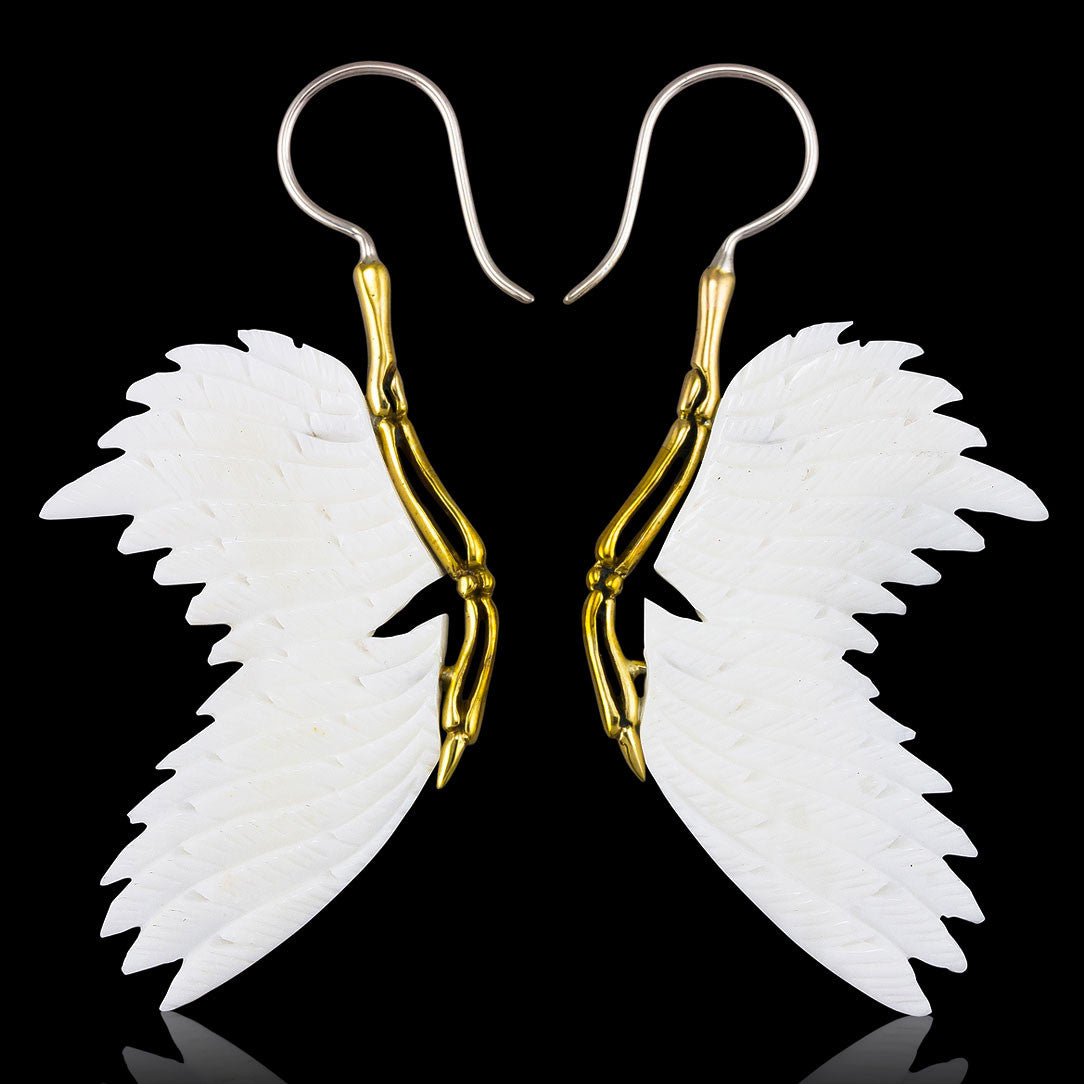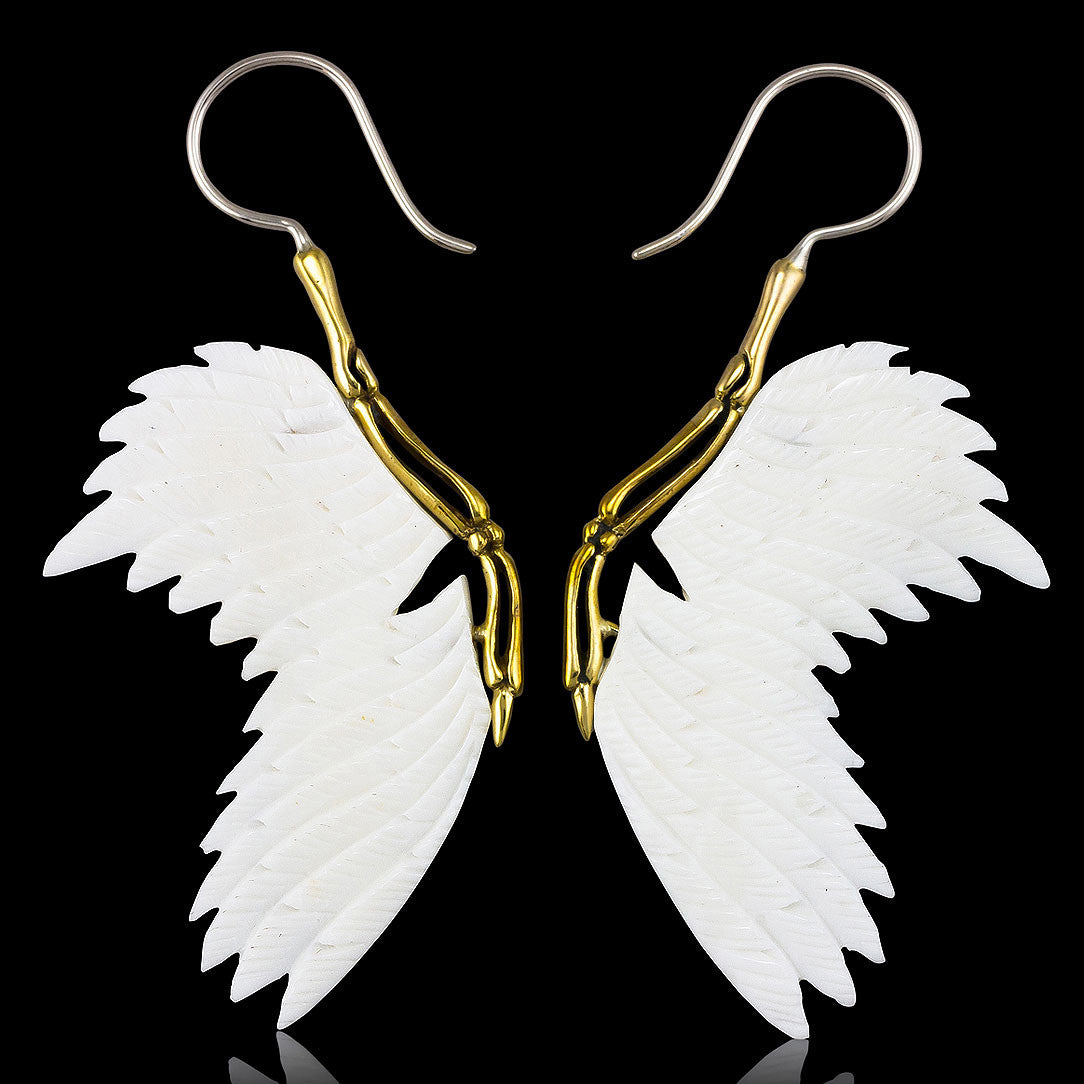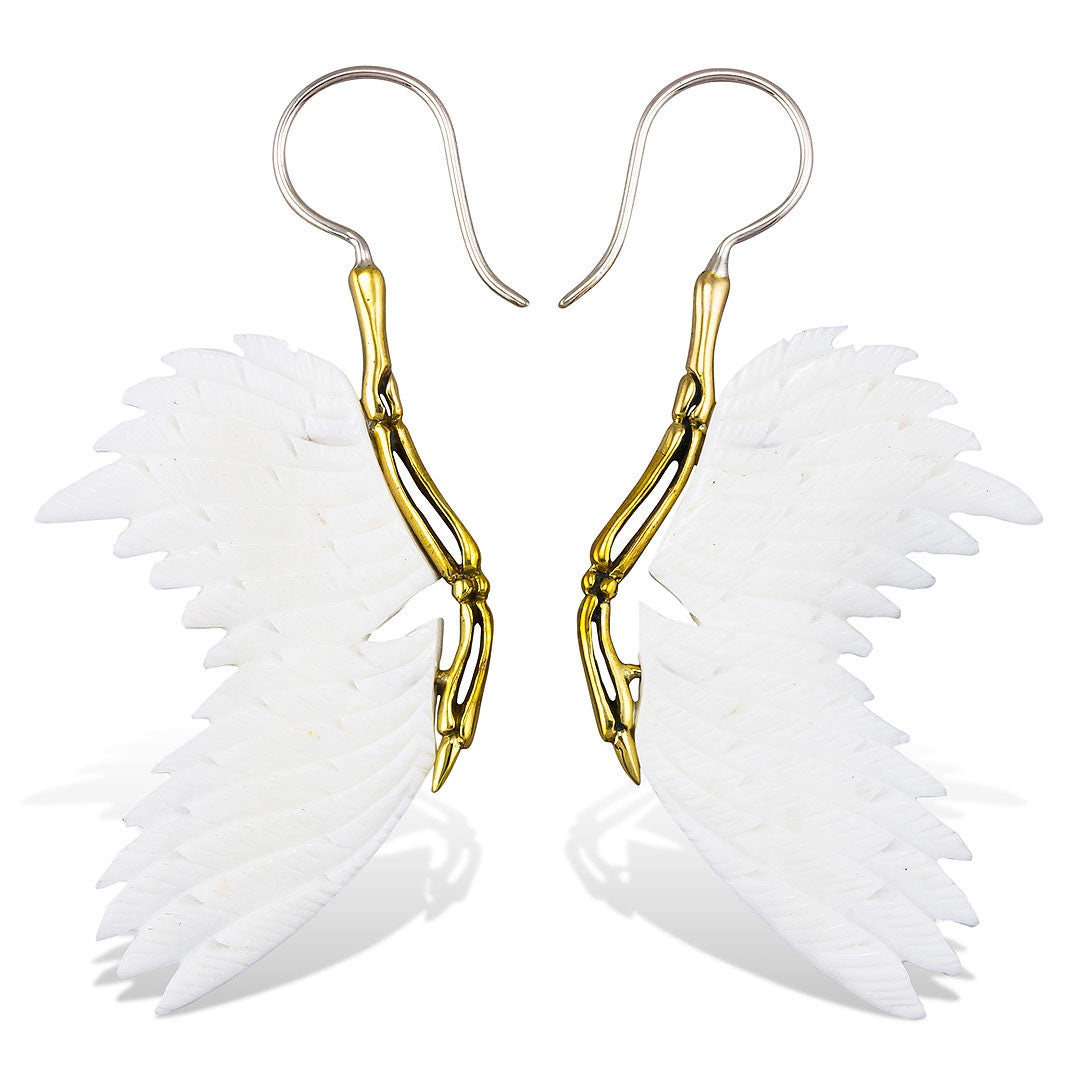 Inlaid in brass, these earrings are carved from salvaged bone from a domesticated water buffalo used for cultivation and food. The 18 gauge sterling silver posts fit standard sized pierced ears.