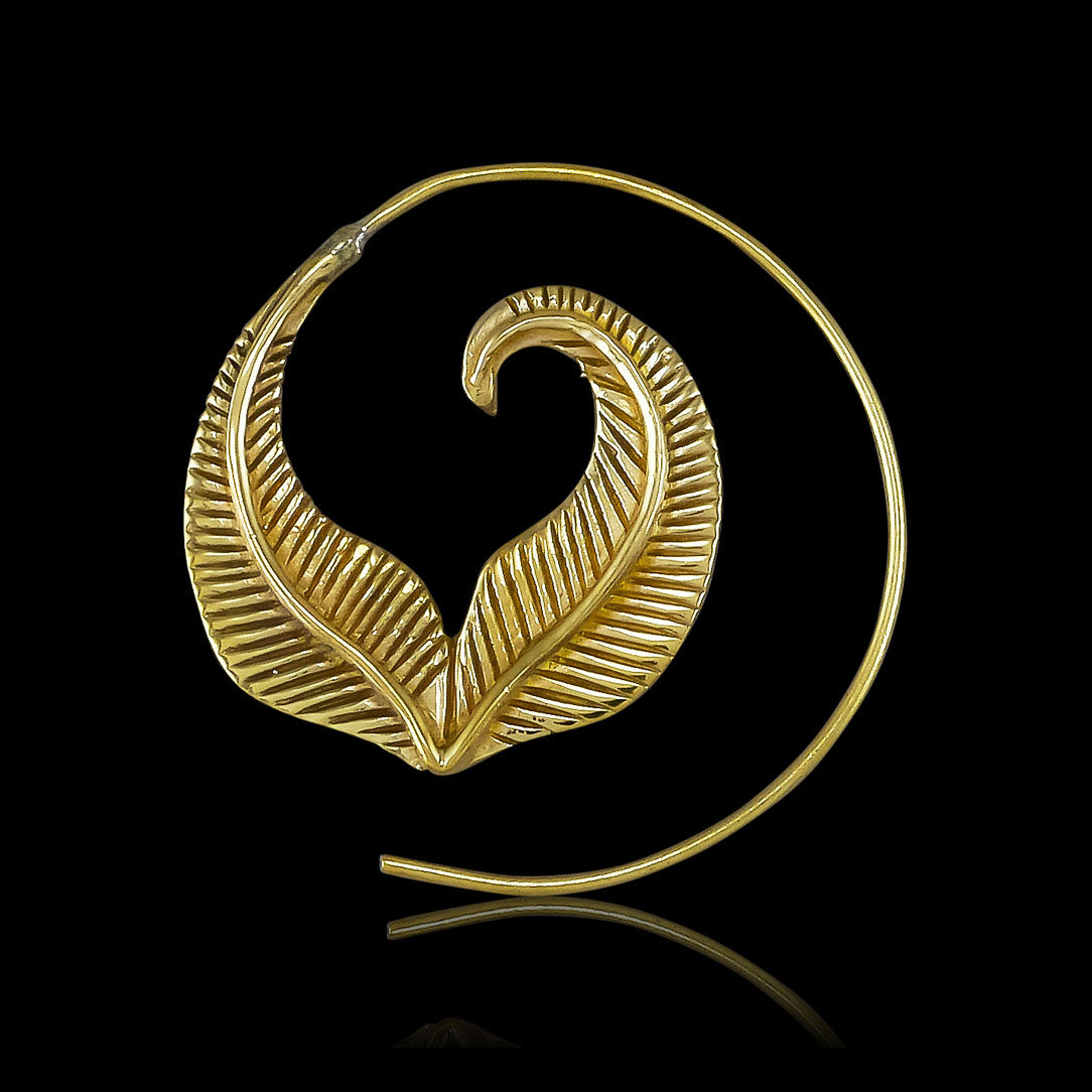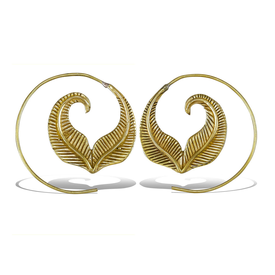 These handmade brass earrings are shaped into designs that are inspired by nature and Hindu culture. The 18 gauge brass posts fit standard sized pierced ears.