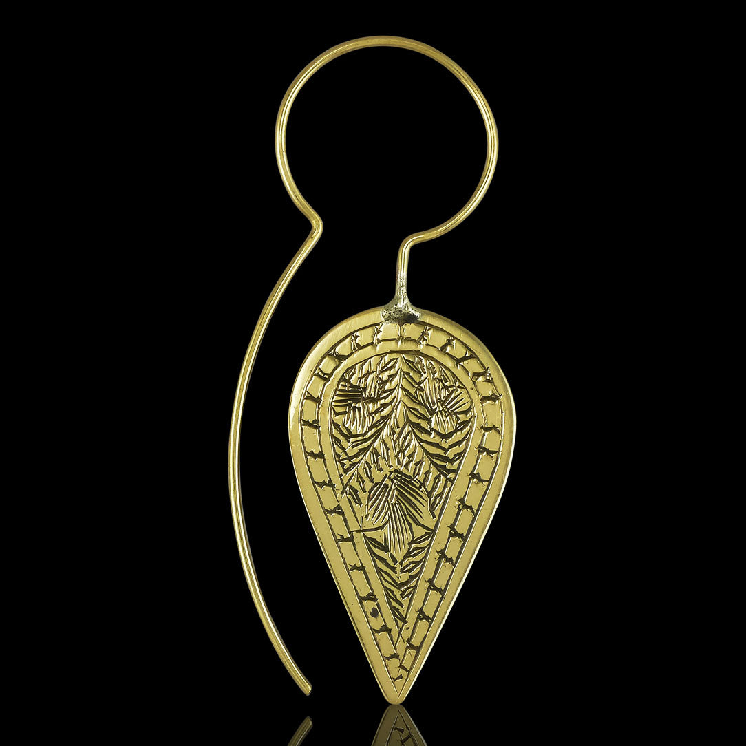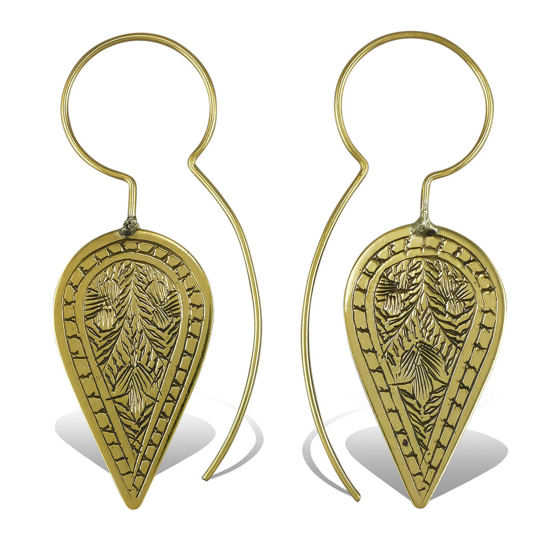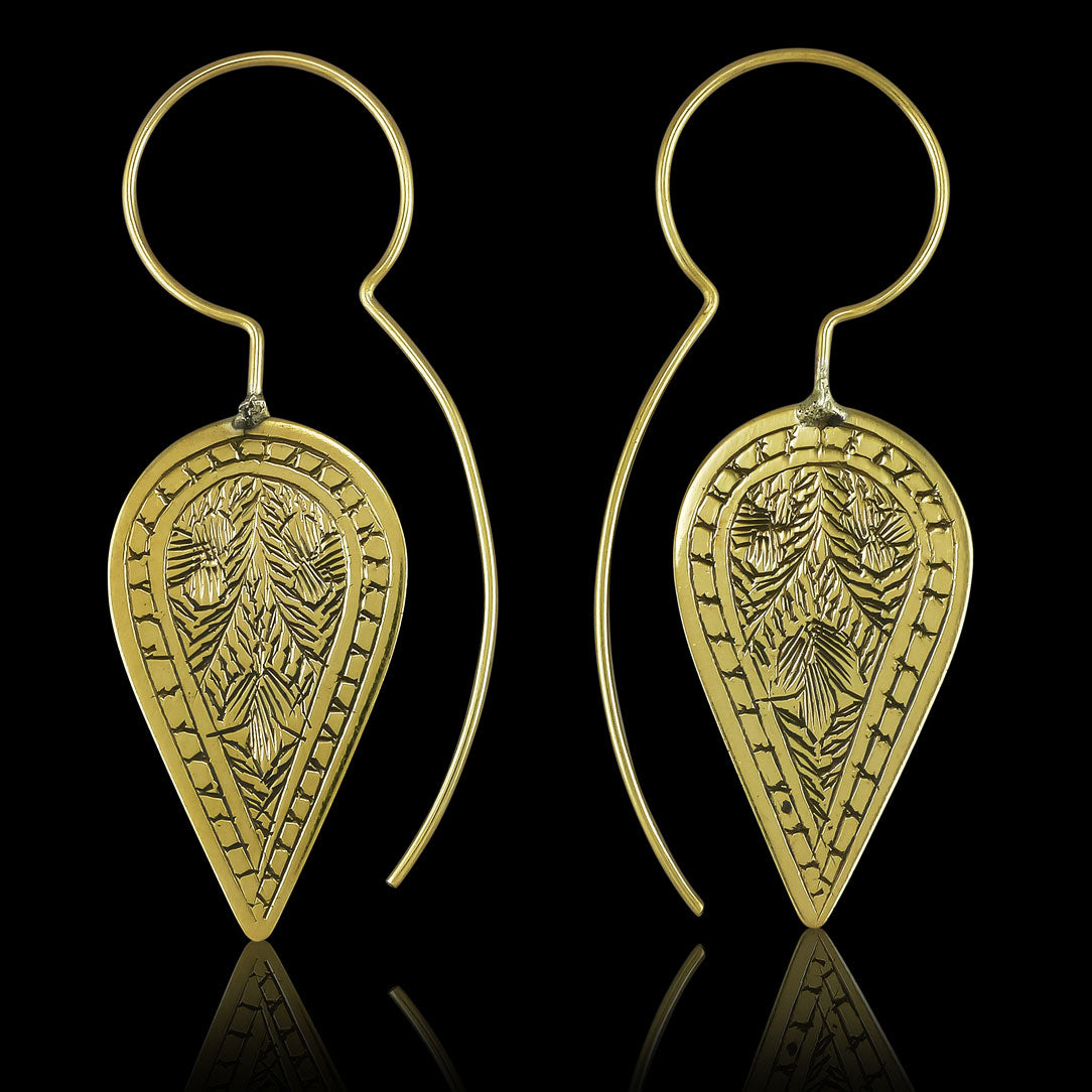 These handmade brass earrings are shaped into designs that are inspired by nature and Hindu culture. The 18 gauge brass posts fit standard sized pierced ears.
