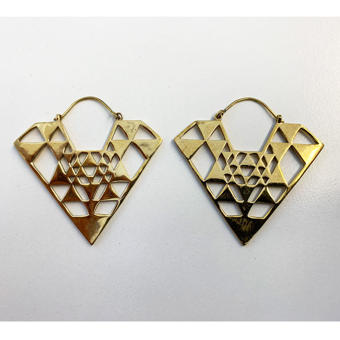 These handmade brass earrings are shaped into designs that are inspired by nature and Hindu culture. The 18 gauge brass posts fit standard sized pierced ears.