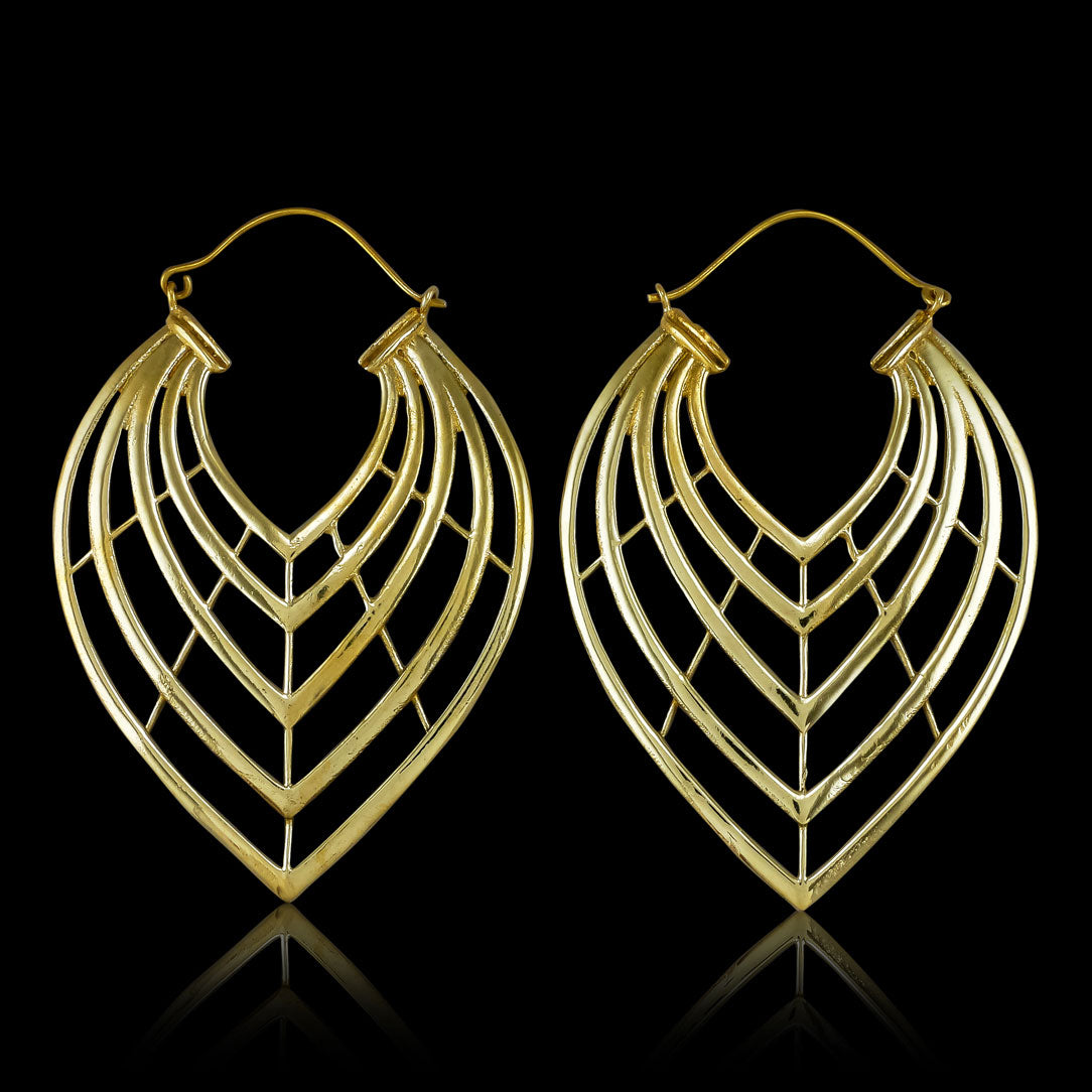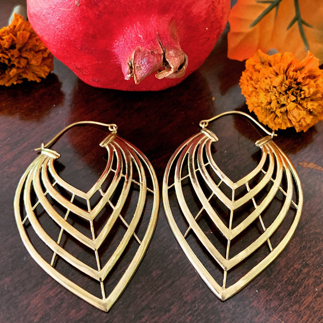 These handmade brass earrings are shaped into designs that are inspired by nature and Hindu culture. The 18 gauge brass posts fit standard sized pierced ears.