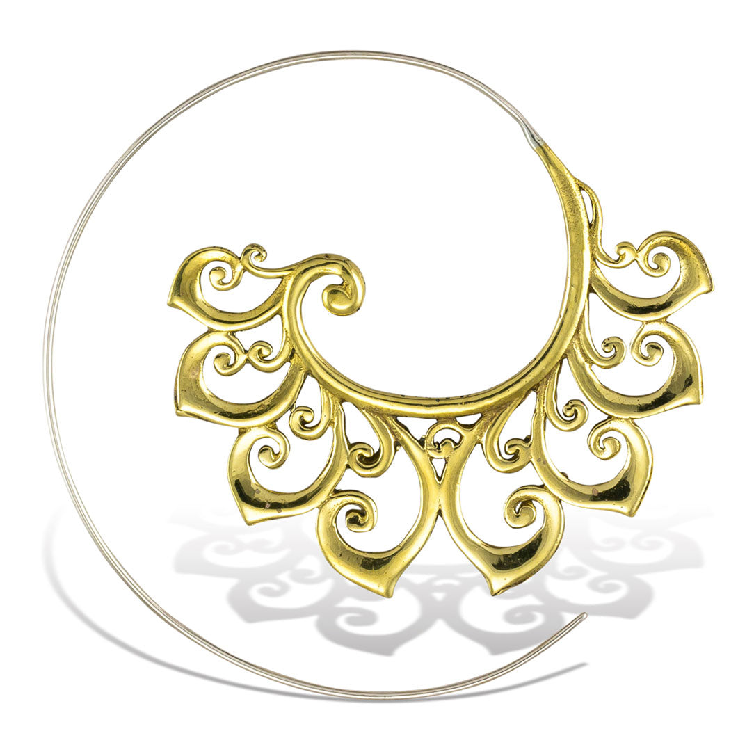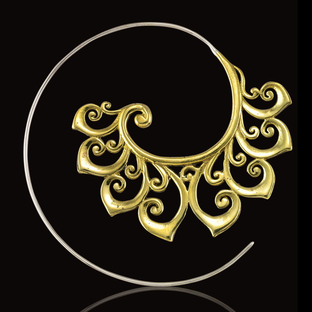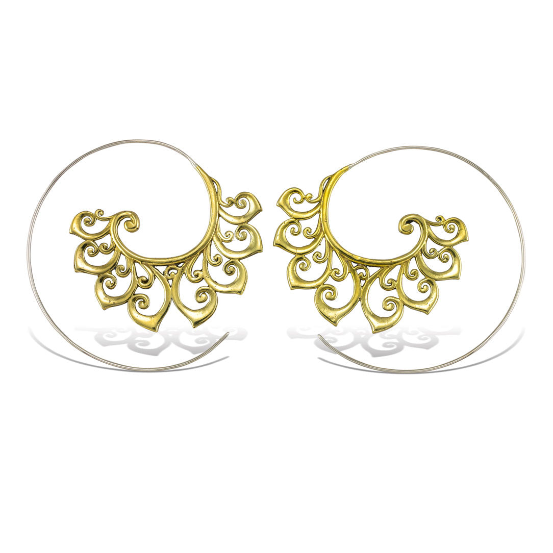 These handmade brass earrings are shaped into designs that are inspired by nature and Hindu culture. The 18 gauge sterling silver posts fit standard sized pierced ears.