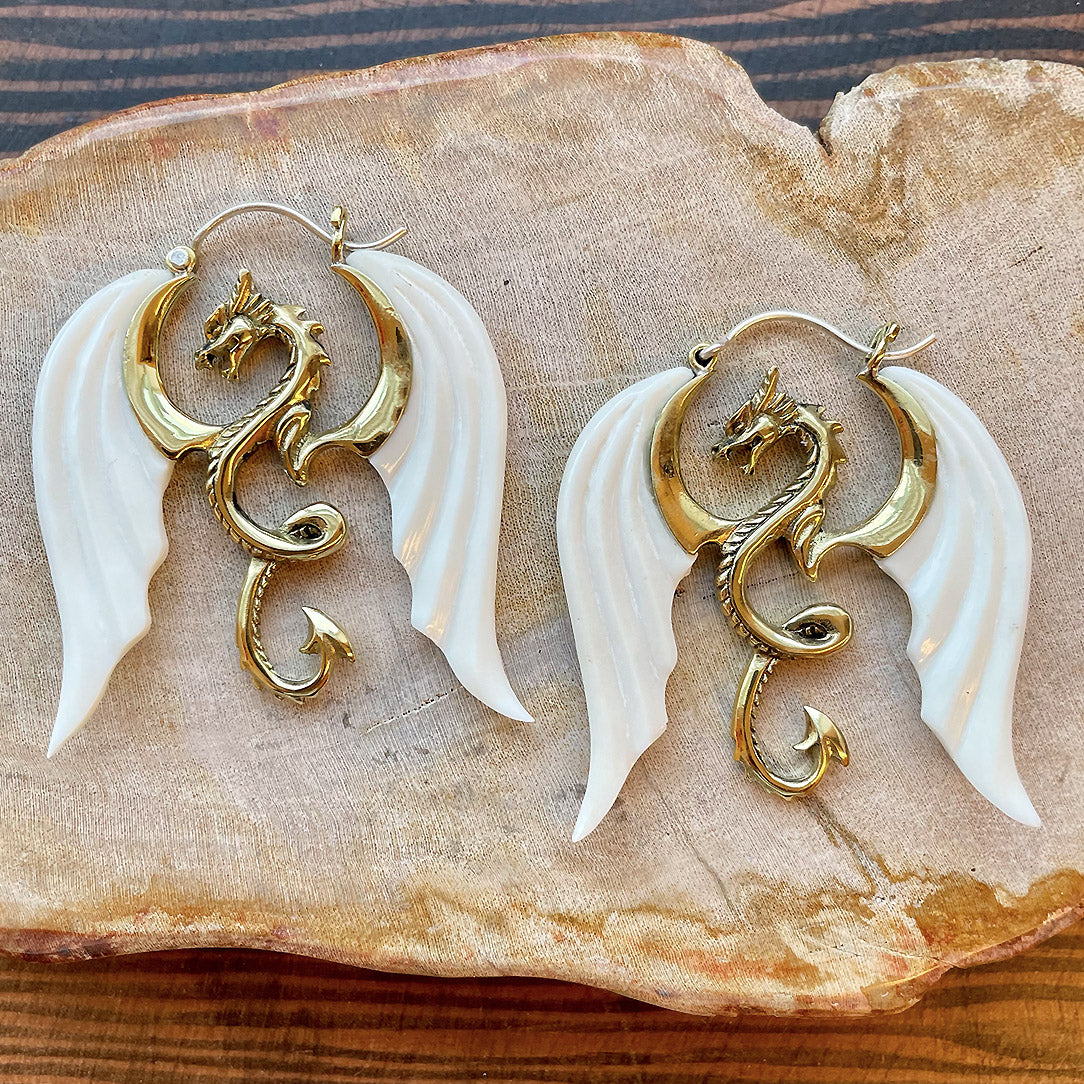 Inlaid in brass, these earrings are carved from salvaged bone from a domesticated water buffalo used for cultivation and food. The 18 gauge sterling silver posts fit standard sized pierced ears.