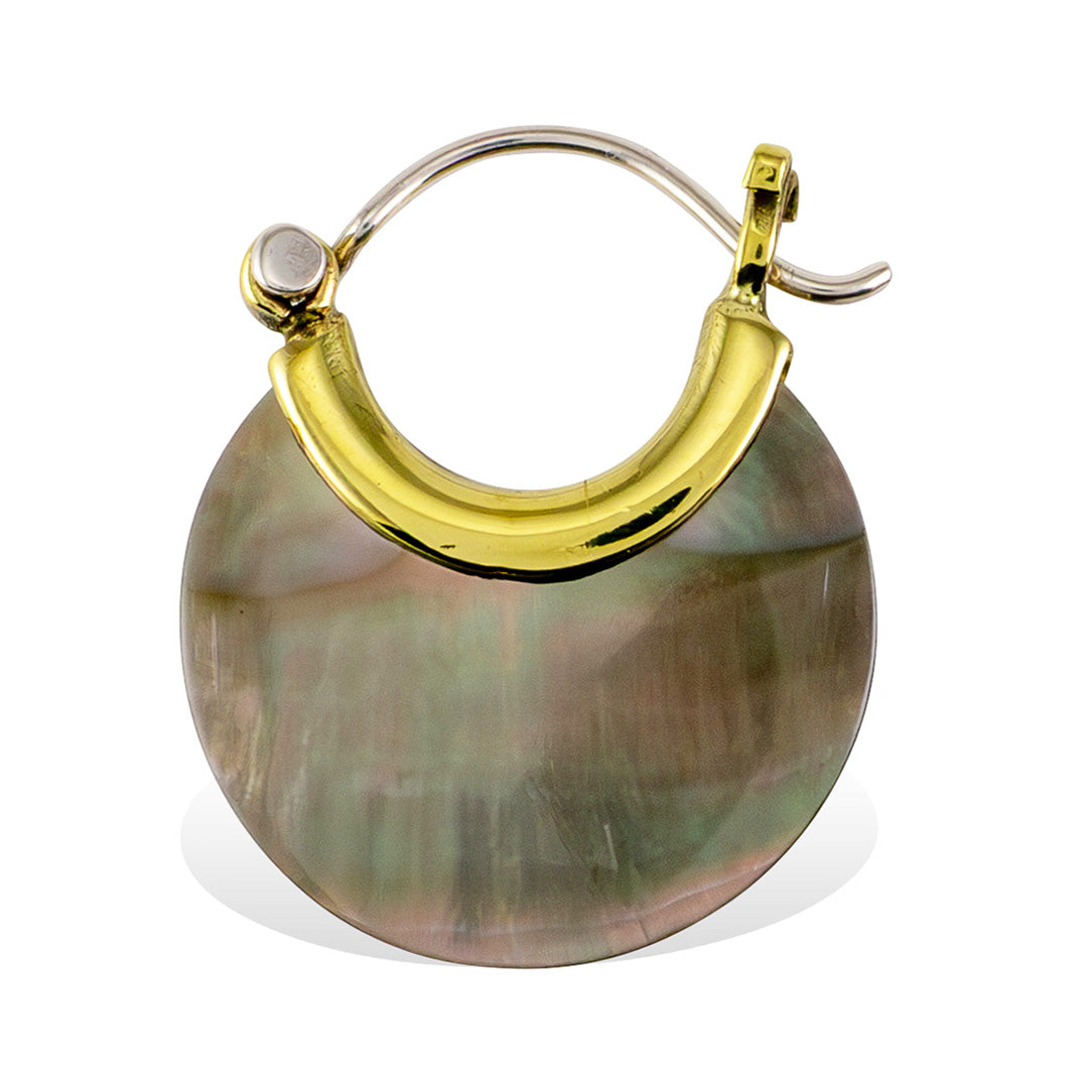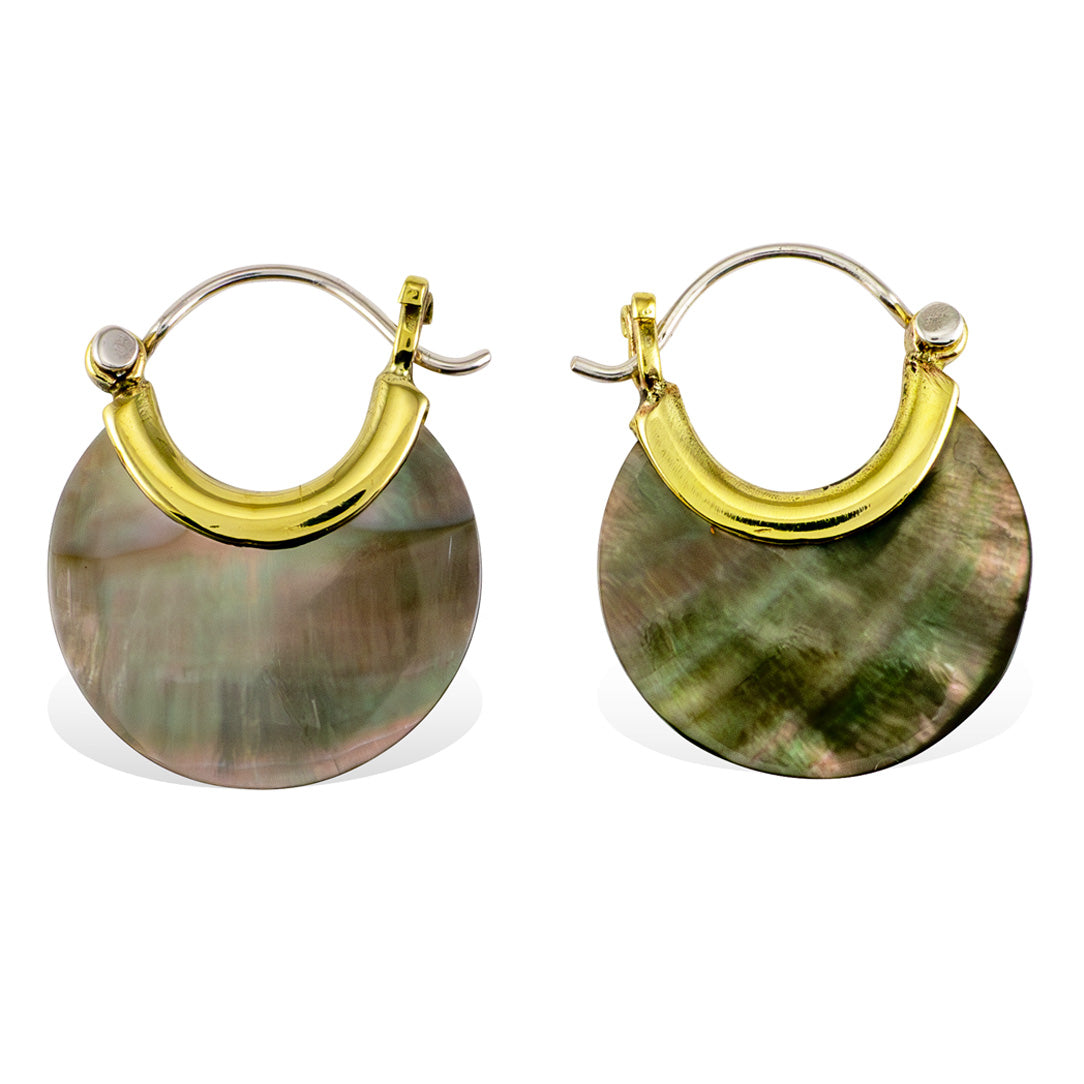 Inlaid in brass, these earrings are hand carved from shell originating from New Zealand. Due to the natural characteristics of the shell some variations in color may occur. The 18 gauge sterling silver posts fit standard sized pierced ears.