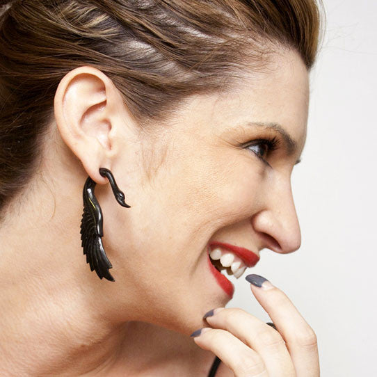The salvaged horn used for these earrings is from a domesticated water buffalo used for cultivation and food. The 19 gauge surgical steel post is 100% hypoallergenic. Slight variation in color may occur.